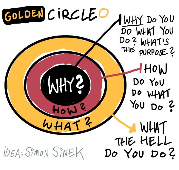 Waarom. Hoe. En wat. Simon Sinek noemt het de ‘gouden cirkel’ voor succes van organisaties. Het ‘waarom’ beschrijft je doel, je drive. Met ‘hoe’ wordt het proces bepaald, terwijl het ‘wat’ gaat over het resultaat dat je bereikt en de middelen die je daarvoor inzet. Sinek’s theorie is dat je altijd begint met je af te vragen ‘waarom’ je iets wil doen. Daarna bepaal je ‘hoe’ je dat gaat doen en van daaruit bedenk je met ‘wat’ je je doel wil gaan bereiken. Waarom, hoe en wat. In die volgorde dus. De laatste tijd ben ik die gouden cirkel herhaaldelijk tegen gekomen. In verschillende overlegsituaties En steeds werd deze volgorde als een onweerlegbare bewijslast ingezet.