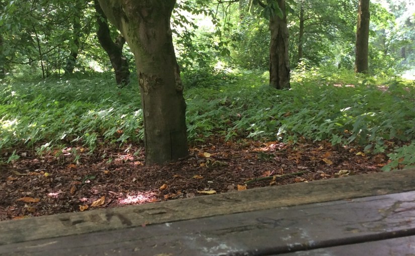 Dus daar zit ik nu. Het is een prachtige zaterdagochtend. Zonnig, maar daar merk je hier onder de kastanjebomen weinig van. Integendeel. Het is een koele plek en een briesje benadrukt dat. Ik zit er nog maar net, maar ondertussen zijn er al wél vier keer mensen voorbijgekomen. Drie keer een joggend stel en één keer een wandelend duo. Twéé keer. Op dit moment passeren een vrouw en een man. Ik had de voetstappen achter me al gehoord.
