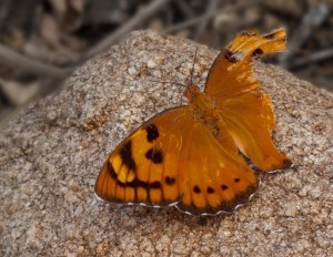 Een vlinder fladderde eergisteren om ons heen. We zaten aan tafel op een feestelijk versierd terras tijdens de receptie van Sanne en Eric. En gisteren landde er zelfs een op een omgekeerd glas. Dat stond op de gedekte tafel bij de verjaardagsbarbecue van Mariet. De mooie vlinder liet zich van dichtbij bekijken maar toen hij zijn vleugels openvouwde bleek een groot deel van een van zijn vleugels te ontbreken.