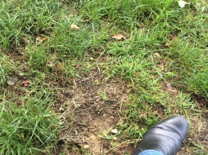 En in de korte tijd dat ik er zit, valt er zo nu en dan nog een uit de boom. In de verte krast een kraai. Opnieuw komt er een wandelaar over het pad dichterbij. Ook hij draagt zo’n pasje, valt me op als hij groetend voorbij loopt. Het is vrijdag, net middag. Een tijdstip waarop ook op mijn werk veel collega’s besluiten tot een middagwandelingetje. De (bijna) afgelopen drie weken van mijn vakantie heb ik ze vaak zien lopen, in groepjes of alleen. Vanaf mijn ‘vakantieplek’ op het terras een herkenbare, maar even nog een wat-verder-van-mij-liggende wereld.
