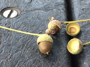 Dit moment. Op de bank lagen eikels toen ik er wilde gaan zitten.
