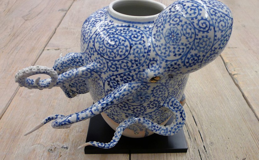 Ceramic artist Keiko Masumoto is intensely interested in the intersection of art and craft, whether a craft object can simply be decorative or if an artistic work can still remain functional. Her questions have resulted in a series of traditional ceramic plates, bowls, and vases embedded with unlikely objects from wriggling octopi to entire buildings. You can explore a bit more in her online portfolio and at Spoon & Tamago.
