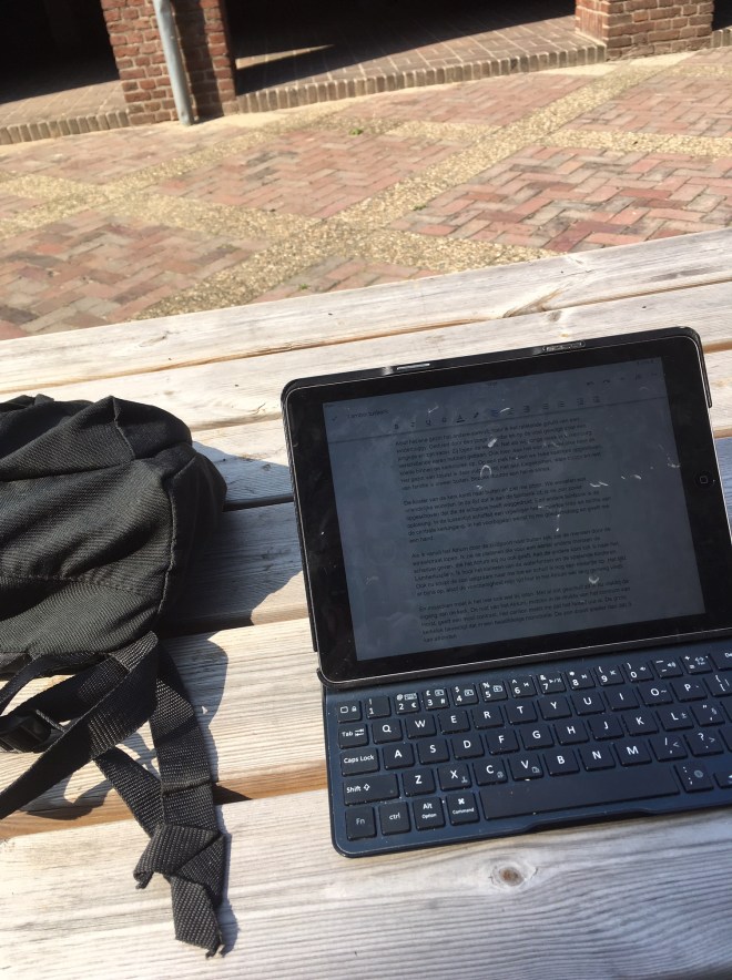 De fontein op het Lambertusplein heeft alweer tot het nodige kindervertier geleid. Het is half twaalf en de temperatuur telt een aangename 26 graden. Ik zie dat het Atrium vergeven is van schaduw. De tuinbanken hebben daar een strategische positie in gekregen. Waarom, bedenk ik me terwijl ik nog op de fiets zit, is dat geen plek om mijn volgende bijdrage te schrijven? Dus daar zit ik nu.