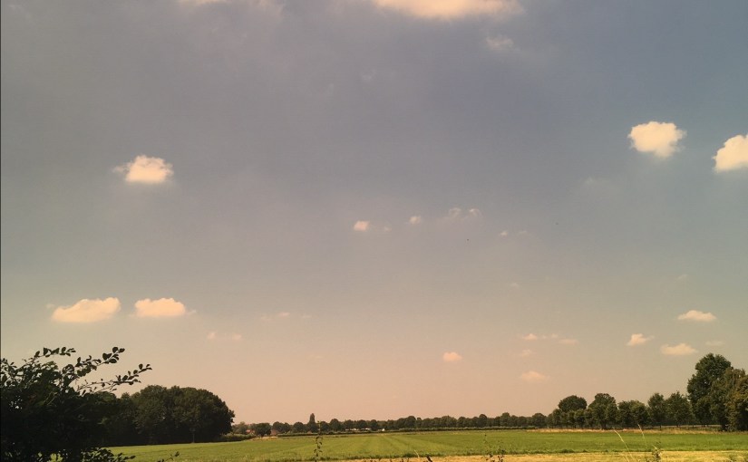 Is het dan een grote stap -in beta-termen doordenkend over inhoud- om te begrijpen dat gedachten in de beperkte binnenruimte van een mensenhoofd, juist in de onbeperkte ruimte van het buitengebied een ideaal afzetgebied vinden? De plek buiten, die zo ruim is, dat je daar gemakkelijk je gedachten de vrije loop kunt laten. Omdat er juist daar meer is tussen hemel en aarde. Meer van ‘iets’.