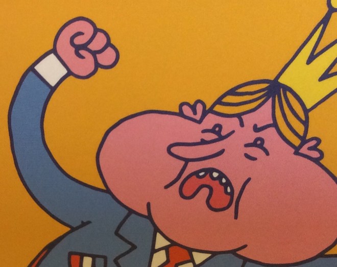 Dus dat boek is er nu. Het eerste exemplaar werd vrijdag 20 september overhandigd aan burgemeester Ryan Palmen, die het dankbaar in ontvangst nam. Chris had ook koning Willem-Alexander uitgenodigd voor de boekpresentatie (‘Ge het fieftig procent kans daat ie keumt: of heej keumt waal of heej keumt ni’) omdat een van de hoofdpersonen uit het boek ‘de keuning’ is. Prachtig getekend overigens door illustrator, grafisch vormgever en gitarist van de Afterpartees: Sjors Driessen. Enige gelijkenis tussen de getekende bolle toet van ‘de keuning’ en onze eigen koning berust overigens op louter toeval…