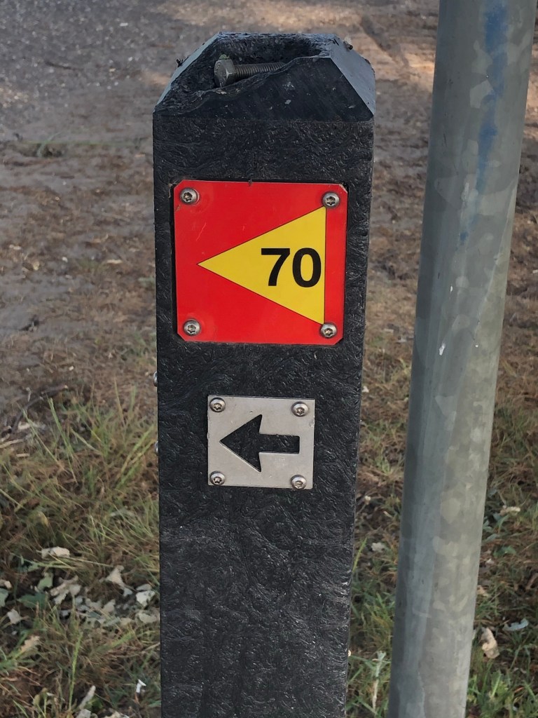 Dat pijltje naar links is natuurlijk gewoon de richting waar routenummer 70 naar verwijst. Maar was het wel een leeftijdsindicatie geweest, dan had ik gelukkig nog tien jaar lang ook gewoon naar rechts gemogen. Ik wil maar zeggen, het kan nog alle kanten op. Dus laat ik inderdaad maar niet te veel vooruitkijken.
