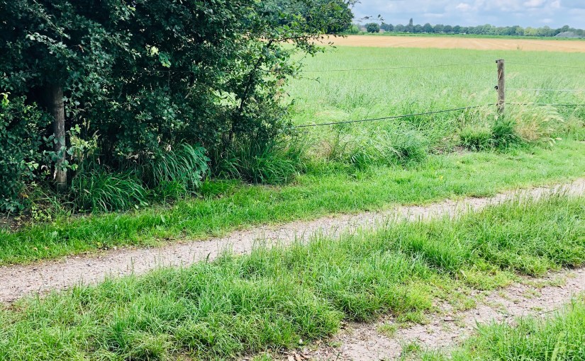 Nu zit ik er weer. Het gele stoppelveld steekt mooi af tegen het groene weiland dat er voor ligt. Wolken zie ik als grote lichte vlekken op me af komen, aaiend over het pad en over het geel en groen. De regels waar ik zondagmiddag nog niet meteen van wist waar ze voor stonden, hebben nu een bestemming gekregen. Ze zijn voor Hanni en voor iedereen die haar vanaf nu in gedachten met zich meeneemt. Voor Walter, Stefan, Guido, hun aanhang en kinderen. Voor de familie en haar vele vrienden en bekenden. Soms komen dingen samen en dan moet het zo zijn. Waar we ook lopen en welk pad we ook gaan…