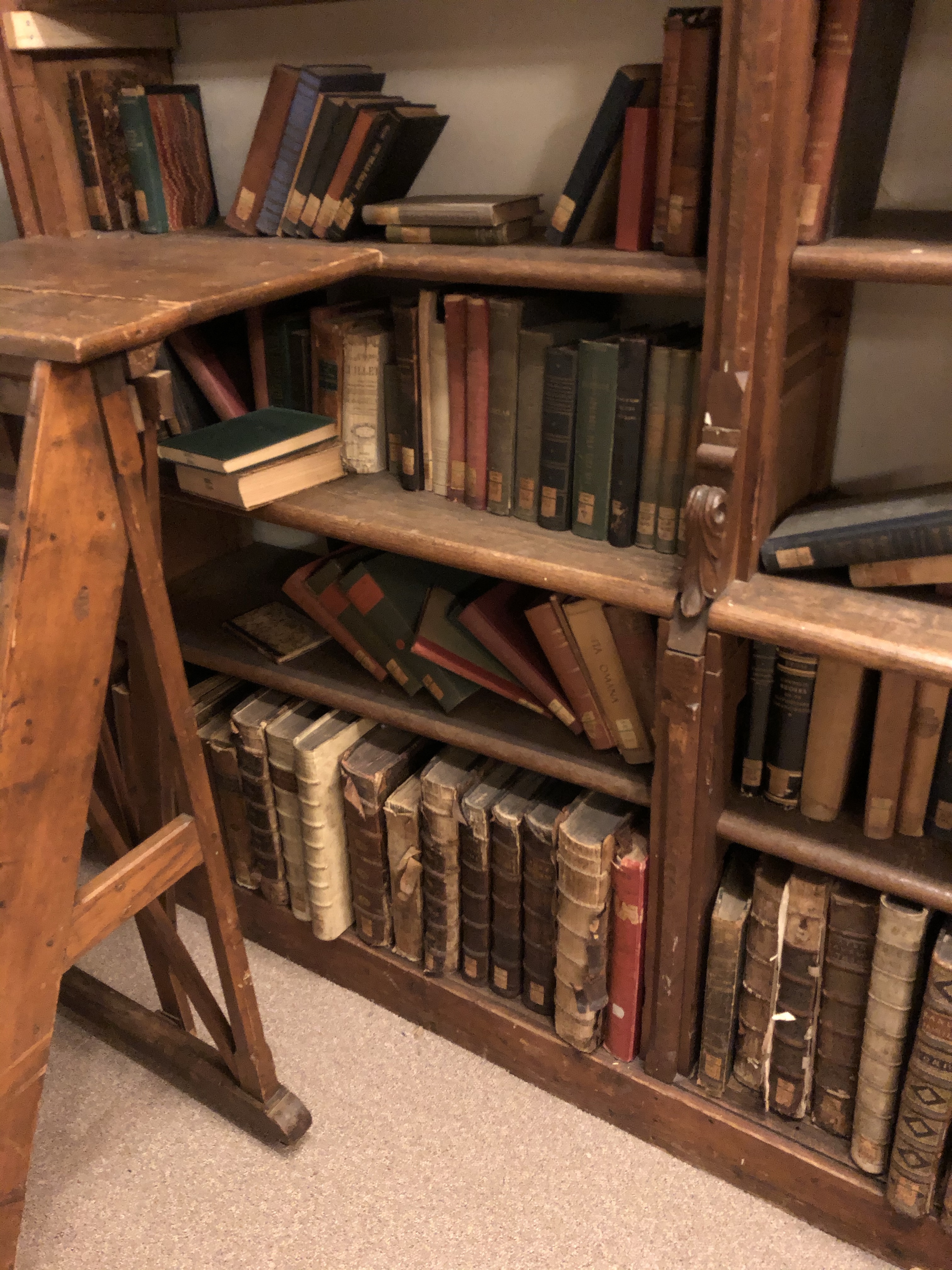 Alle boeken die er staan stralen oudheid uit. Een aantal is ook echt oud. In ieder geval in een staat die dat doet vermoeden. Er hangt een sfeer van vervallen wijsheid. Wijsheid, die er niet meer toe lijkt te doen. Op een vreemde manier wel passend bij mijn voorstelling van het klooster in Huissen, waar ik de komende dagen mag vertoeven. Ik ben op een midweek, waarin filosofie en retraite zijn gecombineerd. Het is maandagavond 10 augustus, half acht.