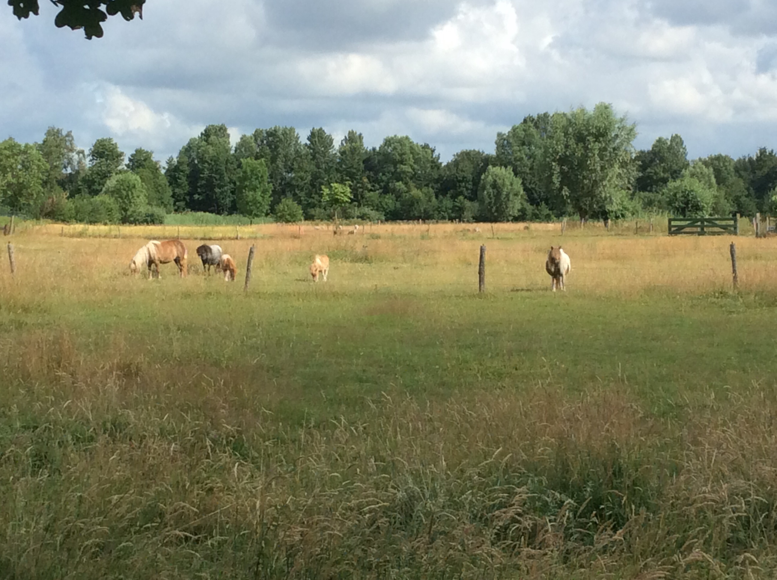 Ik kijk de wei nog eens in. De pony’s grazen. De kalkoen klokt zo nu en dan. Vogelgeluiden van alle kanten. Op afstand hoor ik auto’s, maar er heerst vooral rust. Ik vraag me af hoe het ons later zal vergaan. Als ons iets overkomt, en wie weet, we geplaatst worden in een andere context, zullen wij dan ook gewoon kunnen ‘doorgaan’? Zonder verwijten of wroeging?
