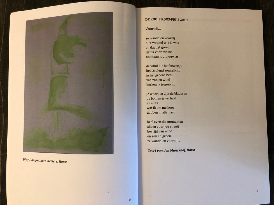 ‘Heej!!’. Opnieuw riep ze naar de persoon bij het raam. Impulsief en hard. Maar ze zag nauwelijks reactie. Dus bleef ze roepen. Tevergeefs. Het werd haar in één keer duidelijk. Weg ermee! Ze wierp het bakje druiven met kracht in de richting van het raam. Het spatte uiteen tegen de plank bij het voeteneinde van haar bed De schaduw bij het raam kromp ineen! Ha! Dat verklaarde veel. Het moest wel gif zijn! Met haar voet vertrapte ze één voor één de groene bolletjes. Het was ‘t enige juiste om te doen! Daar! En daar. Nóg een. Dáár!