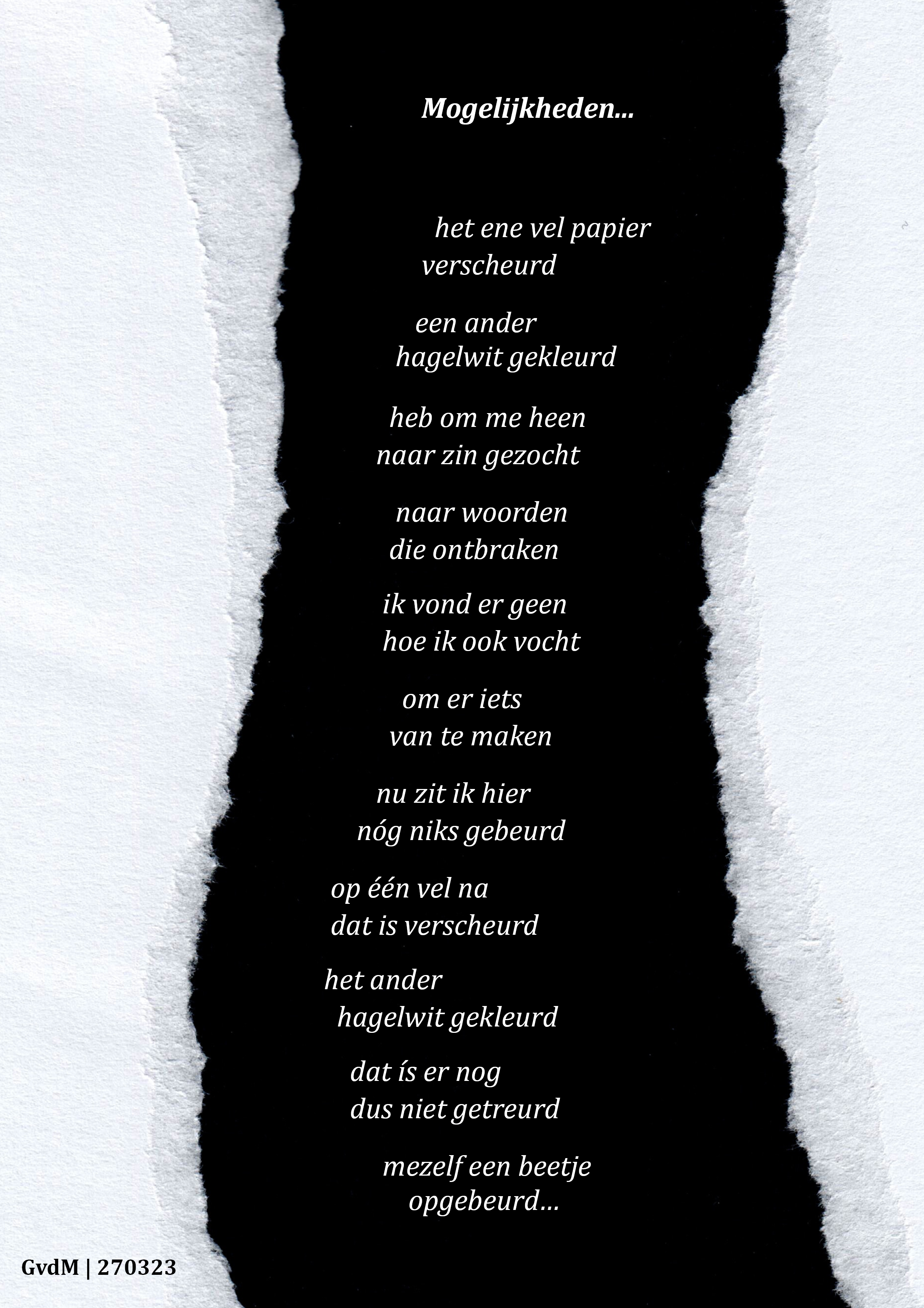 Ik weet dat er veel manieren zijn om iets te zeggen zonder woorden. En dat er evenzoveel of misschien nog wel meer manieren zijn om woorden te gebruiken die vaak iets heel anders willen zeggen. En ik weet dat het begrijpen van die niet-gesproken of gesproken woorden geen vanzelfsprekendheid is. Ik bedoel dat het interpreteren ervan, welbeschouwd, een eenzijdige actie is. In dit geval van mij. Dus of Mees het ook zo bedoelde weet ik niet. Hoe dan ook. Het ontroerde me.
