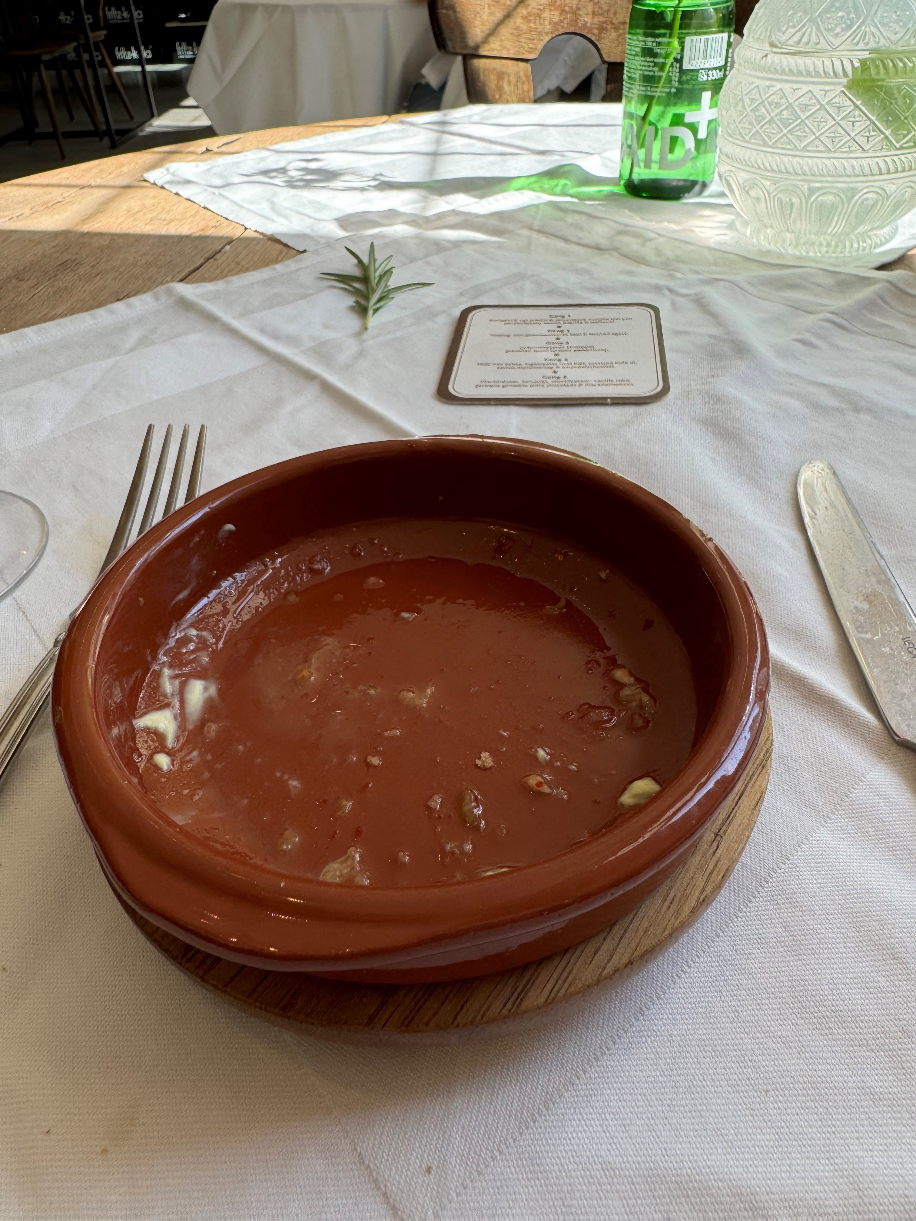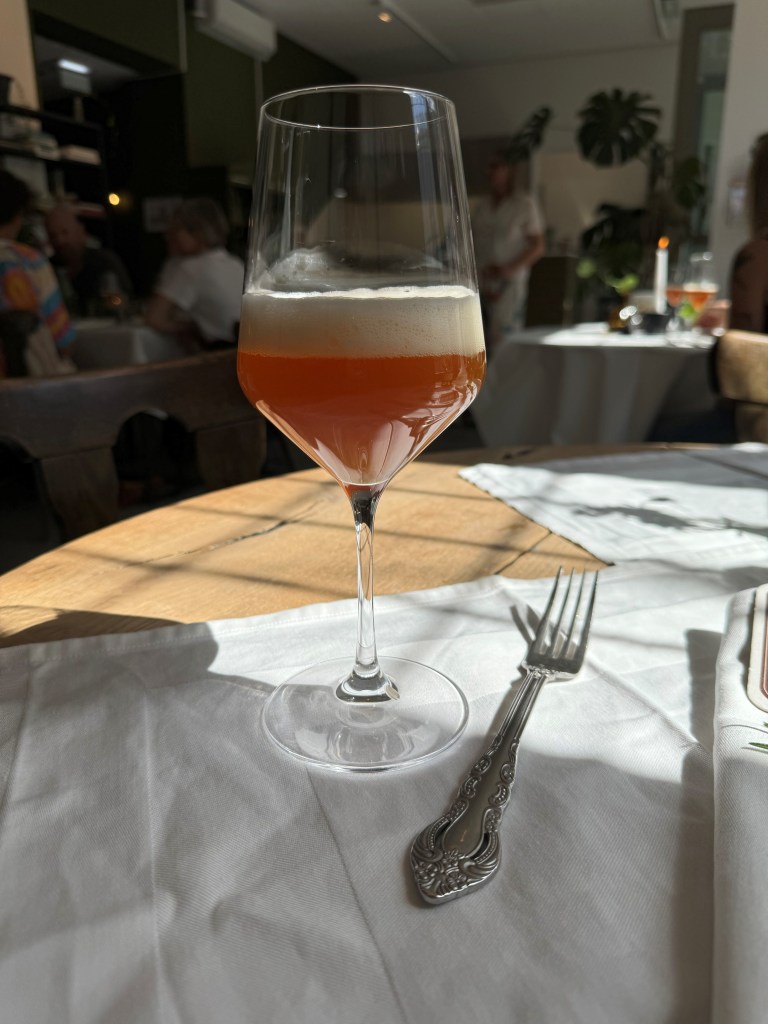 Nou. Prima dus. Verrassende combinatie op het bord (zie foto hierboven van gang 3) en het zuurtje in het bier smaakt bij elke slok wat frisser. Kitty kwam even buurten om te vragen hoe het was. Prima. Prettige entourage. Verrassend eten. Bijpassende bieren. Samengevat: naar volle tevredenheid. Ze wenst me nog een smakelijke voortzetting en loopt naar een andere tafel.